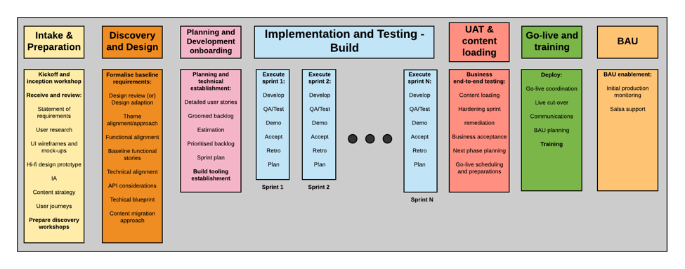 While Salsa’s delivery process is agile and iterative it does follow a proven set of execution stages.