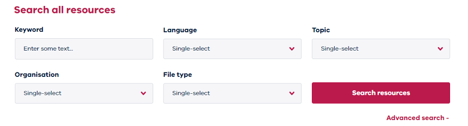 The customised search bar is available on every page and allows people to search the resources quickly and easily (see highlighted search bar in the screenshot below).
