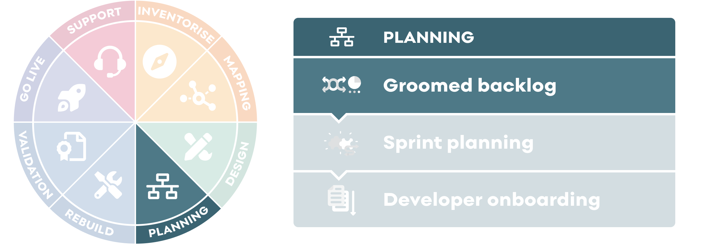 The groomed backlog is step 10 of a 24 step project delivery process Salsa has designed for migrating (or upgrading) sites from a legacy or proprietary CMS to Drupal 9.