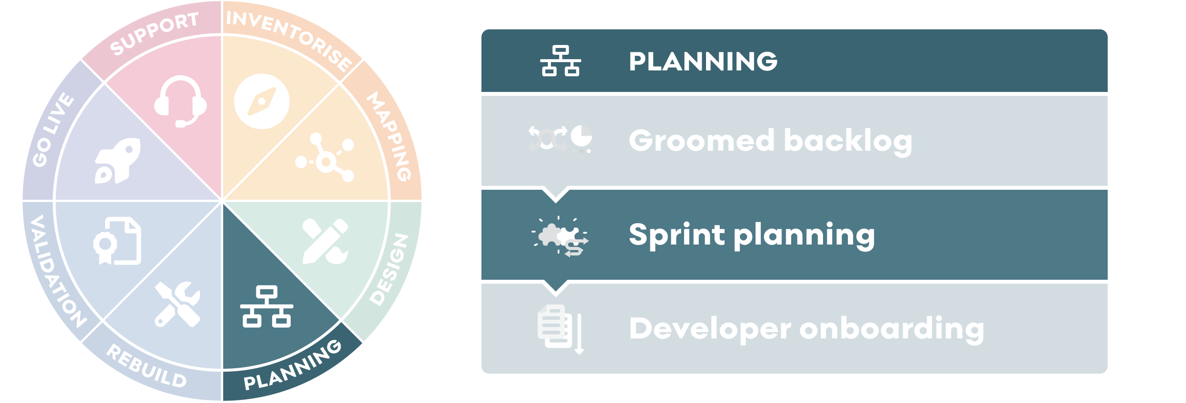 The sprint planning is step 11 of a 24 step project delivery process Salsa has designed for migrating (or upgrading) sites from a legacy or proprietary CMS to Drupal 9.