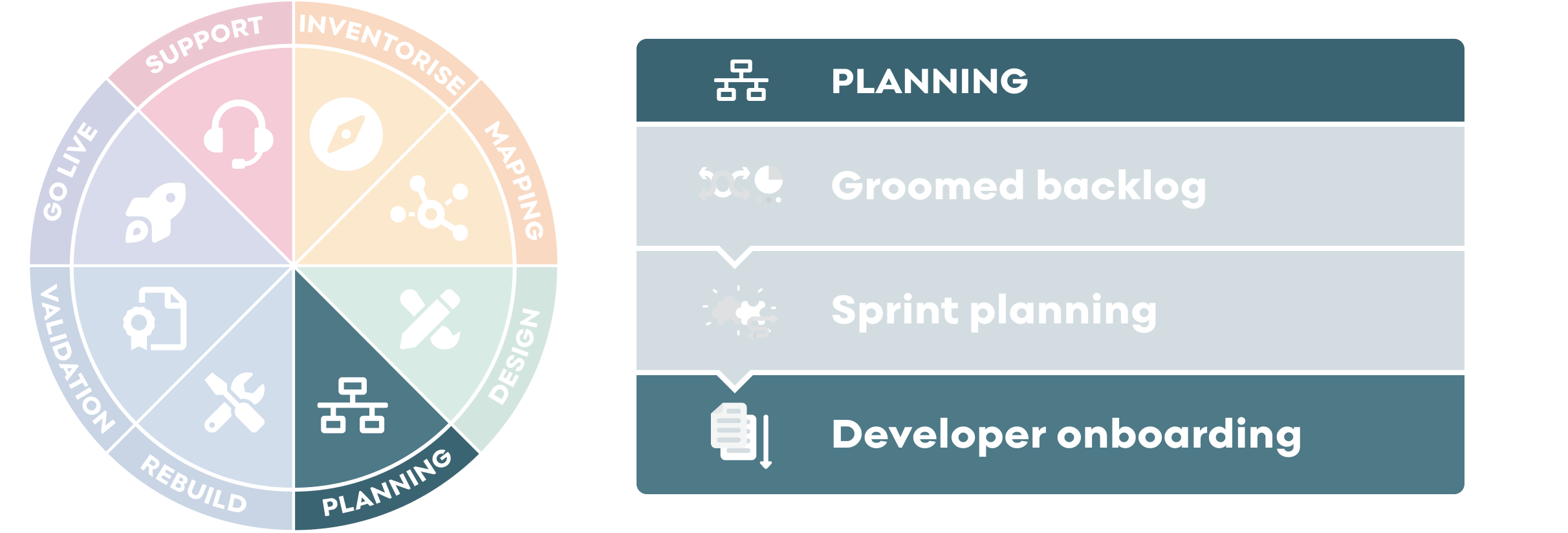 The developer onboarding is step 12 of a 24 step project delivery process Salsa has designed for migrating (or upgrading) sites from a legacy or proprietary CMS to Drupal 9.