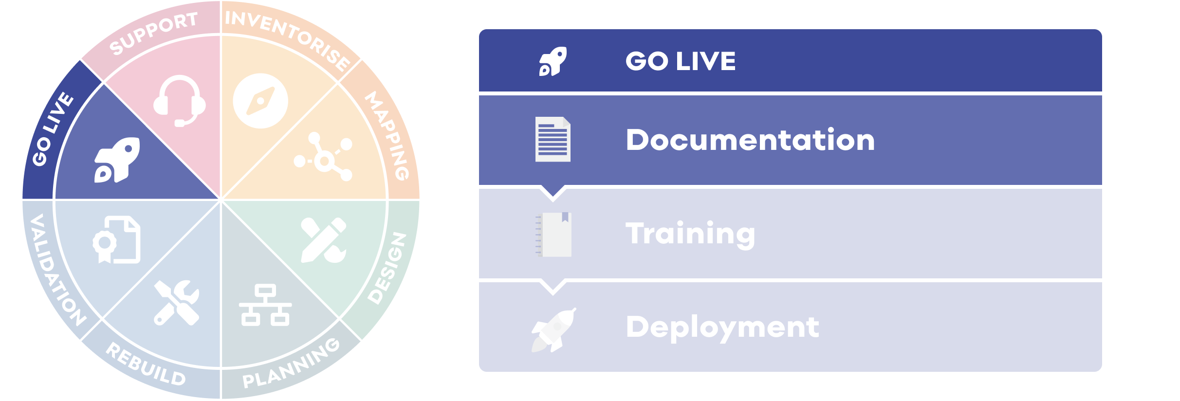 The documentation is step 19 of a 24 step project delivery process Salsa has designed for migrating (or upgrading) sites from a legacy or proprietary CMS to Drupal 9.