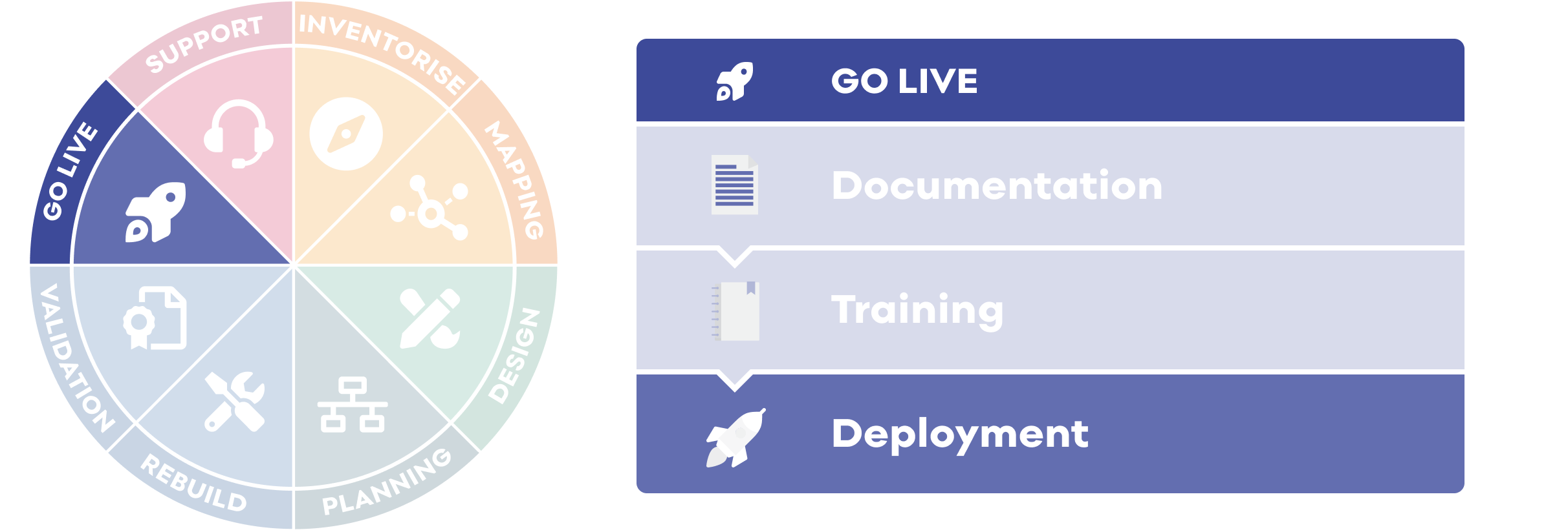 The deployment is step 21 of a 24 step project delivery process Salsa has designed for migrating (or upgrading) sites from a legacy or proprietary CMS to Drupal 9.