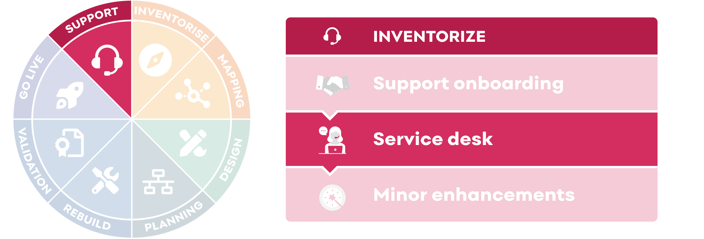 The service desk is step 23 of a 24 step project delivery process Salsa has designed for migrating (or upgrading) sites from a legacy or proprietary CMS to Drupal 9.