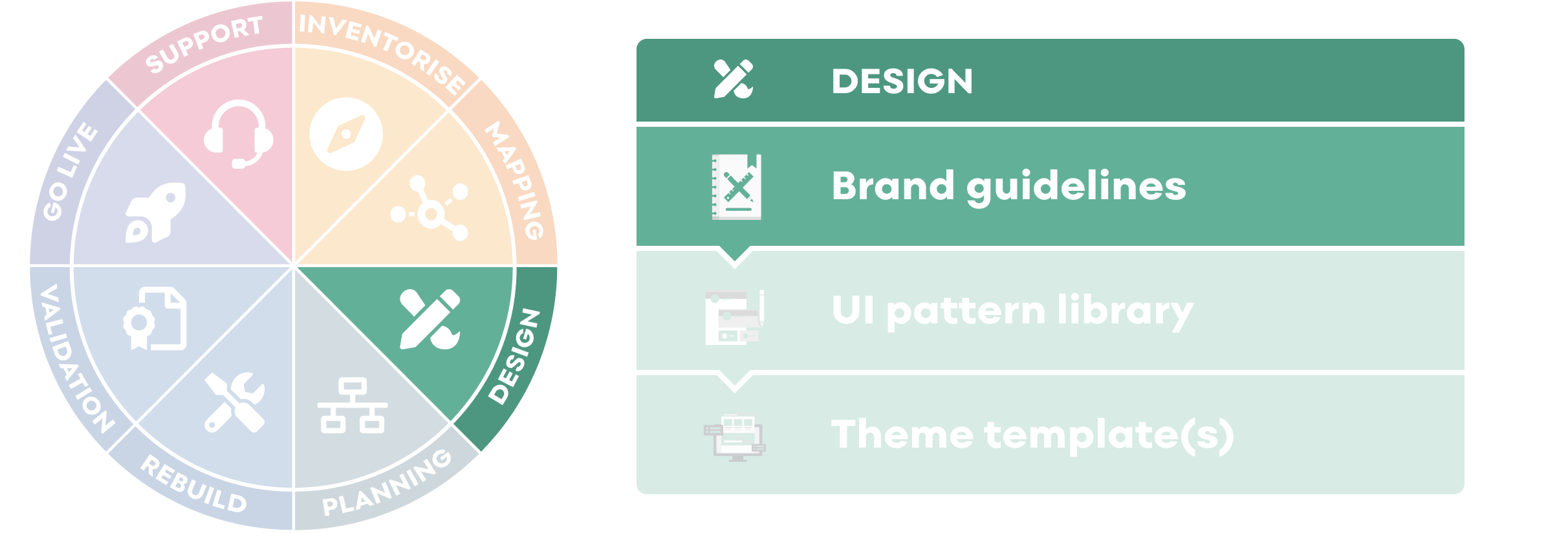 The brand guidelines is step 7 of a 24 step project delivery process Salsa has designed for migrating (or upgrading) sites from a legacy or proprietary CMS to Drupal 9.