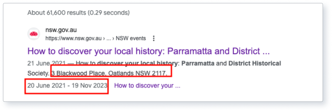 Above: Screenshot of schema.org markup as it’s displayed in Google search engine.