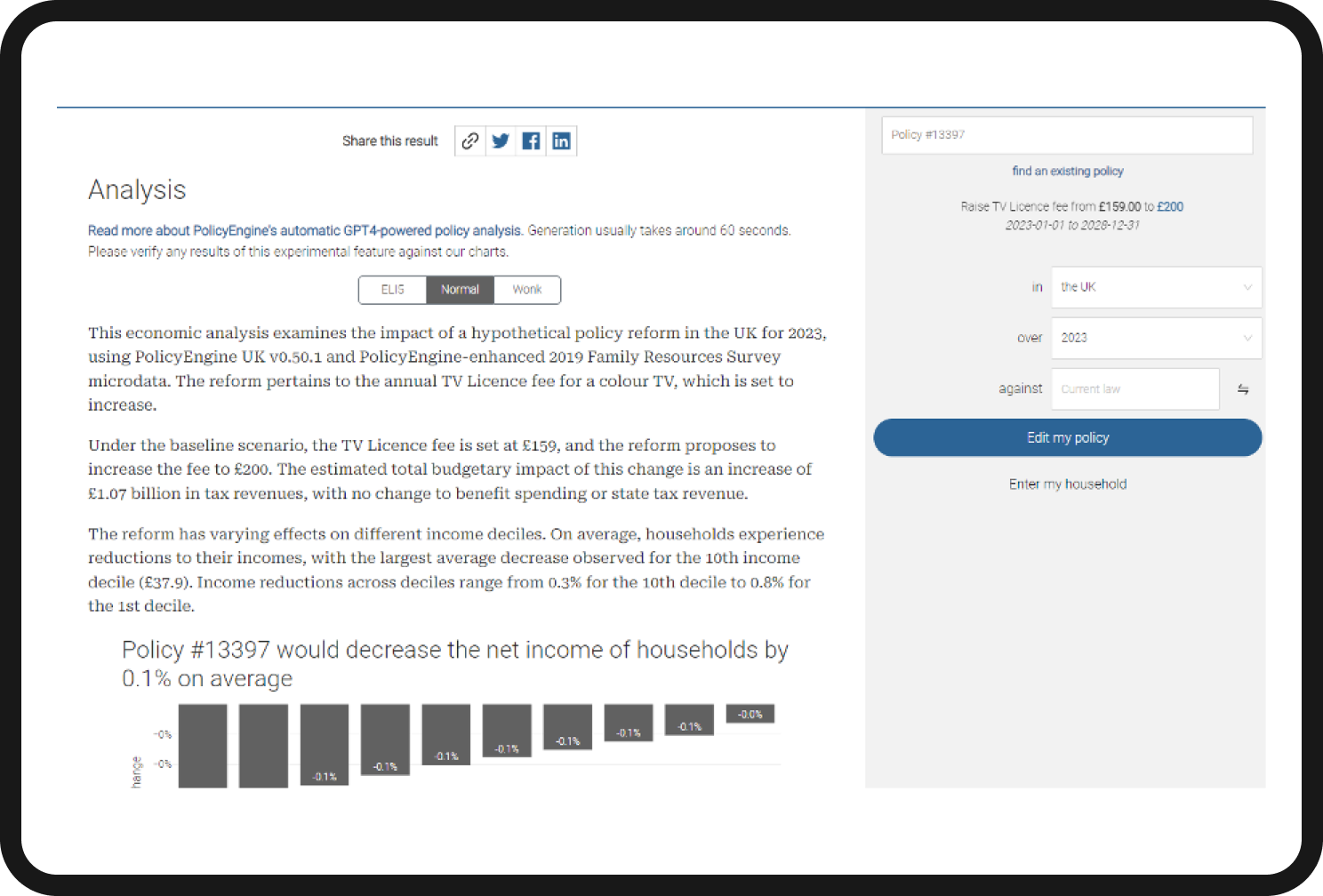 As demonstrated above, PolicyEngine also uses ChatGPT to generate analysis of the policy changes.