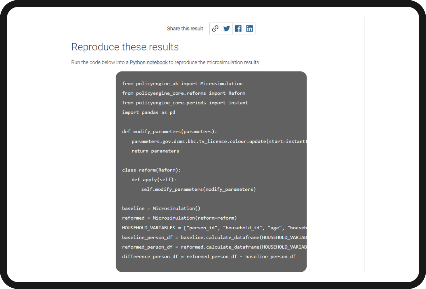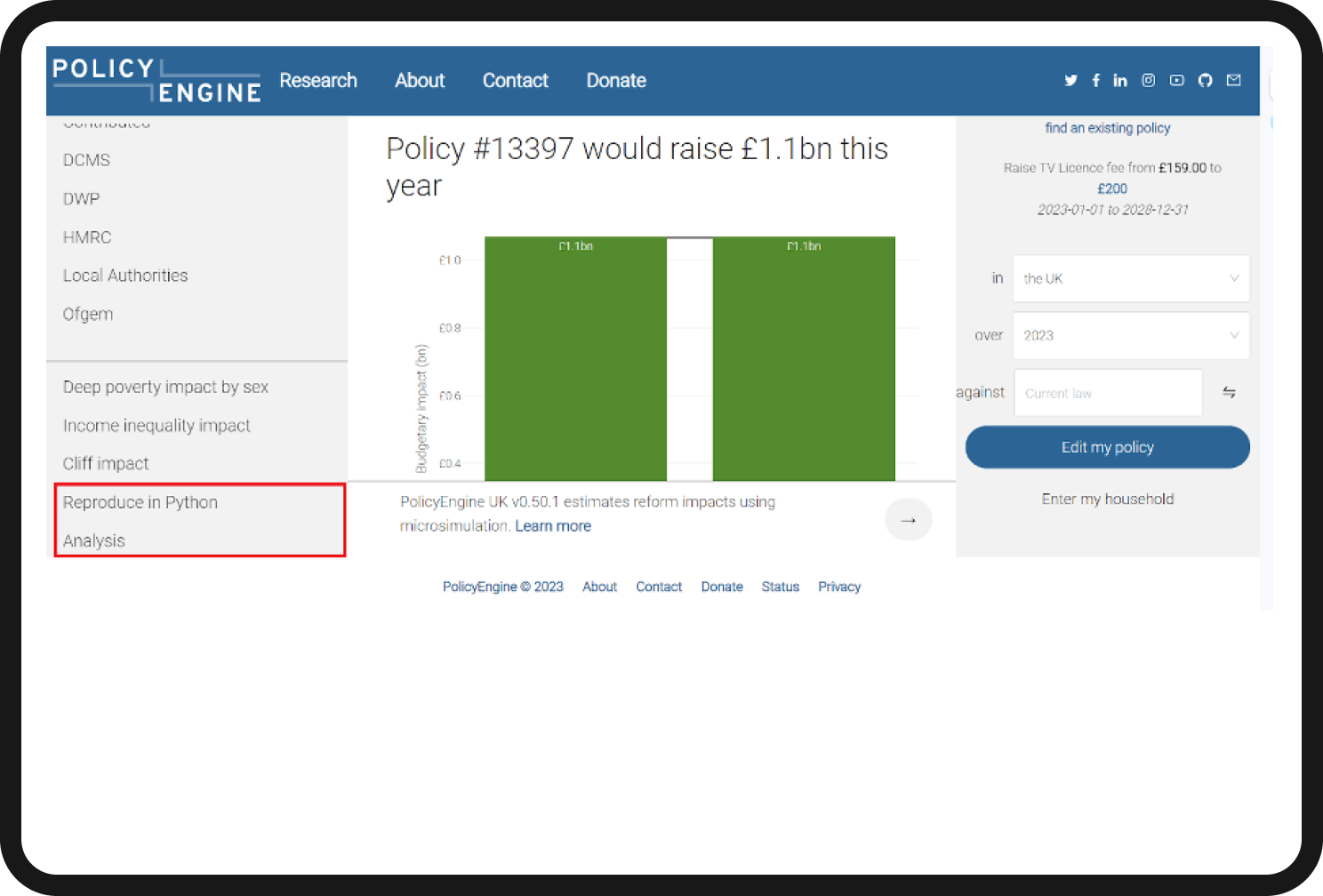 PolicyEngine also has some really cool functionality built in, like the ability to see your search parameters and results in Python and an integration with ChatGPT so you can produce reports on proposed policy changes. Very cool!